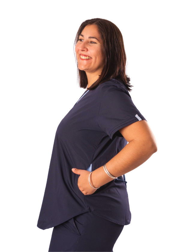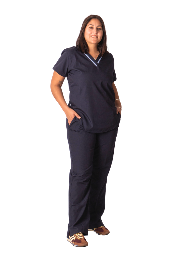 Ambo de diseño clásico en azul con celeste: canchero, cómodo y funcional.